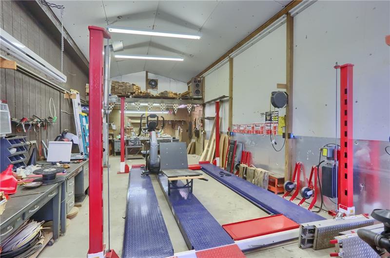 One of a kind secluded property consisting of over 10.5 acres of in Laurel School District, close to Route 19, 422 and 79. Relax by the creek, play in the swimming hole or cross one of the bridges to go on a hiking adventure! This property boasts a versatile 50x40 two story barn/garage with 24x50 second floor, formerly a wood working shop and storage. An added 14x50 side bay is insulated and has AC, heat, running water and a custom car lift. Other features include granite counters, luxury vinyl plank flooring and stainless appliances in the kitchen, 3 car climate controlled attached garages finished with epoxy stone flooring, enormous screened glass sunroom, gorgeously landscaped stone back patio with Sunsetter awning, perfect for outdoor entertaining. Finished lower lever complete with kitchenette, living room and full bath. Don't miss this one!